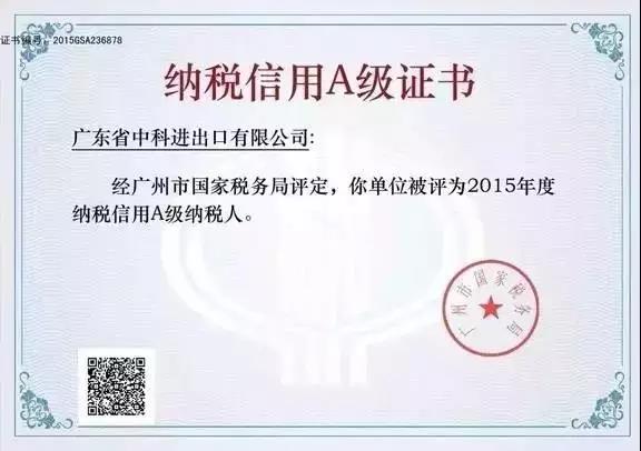 Our company was rated as the AAA enterprise of annual tax payment credit in 2016, which is highly praised and recognized by guangzhou state taxation bureau. In the future, our company will enjoy special channels in banking, tax, industry and commerce departments, so as to handle various businesses more conveniently and quickly, and provide more efficient and high-quality services for our customers.